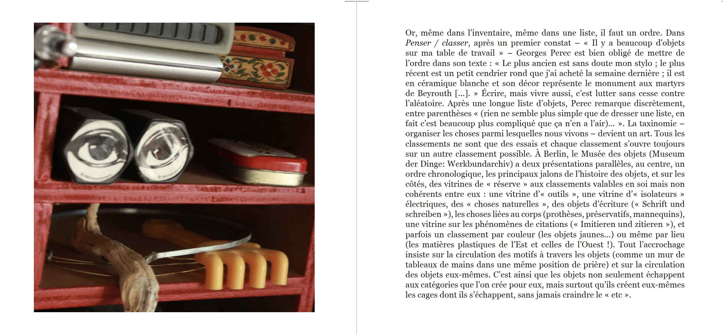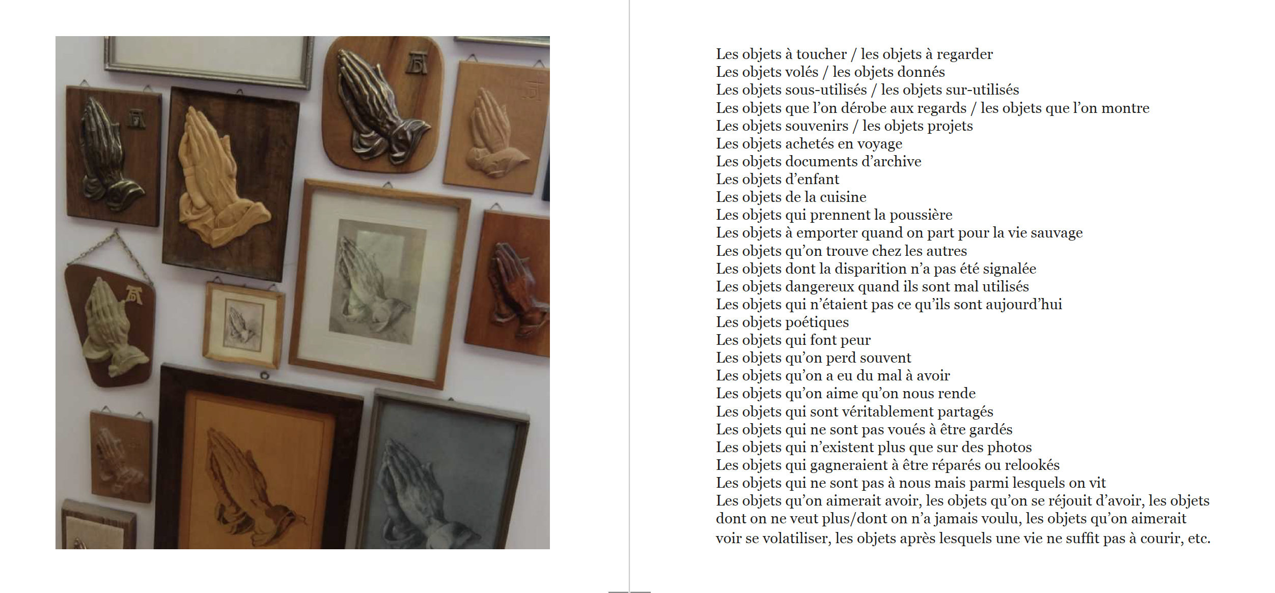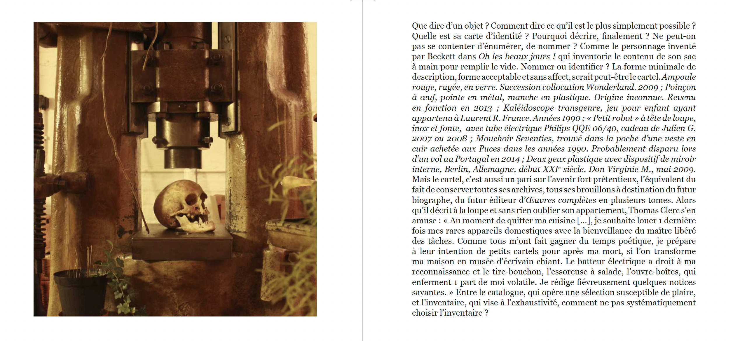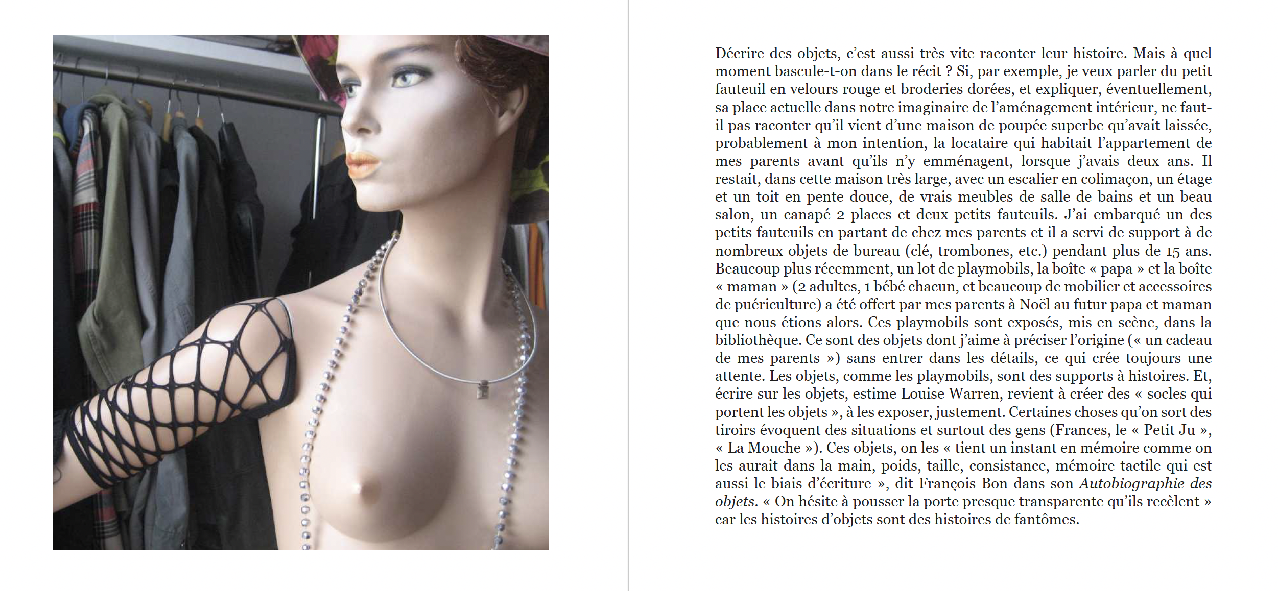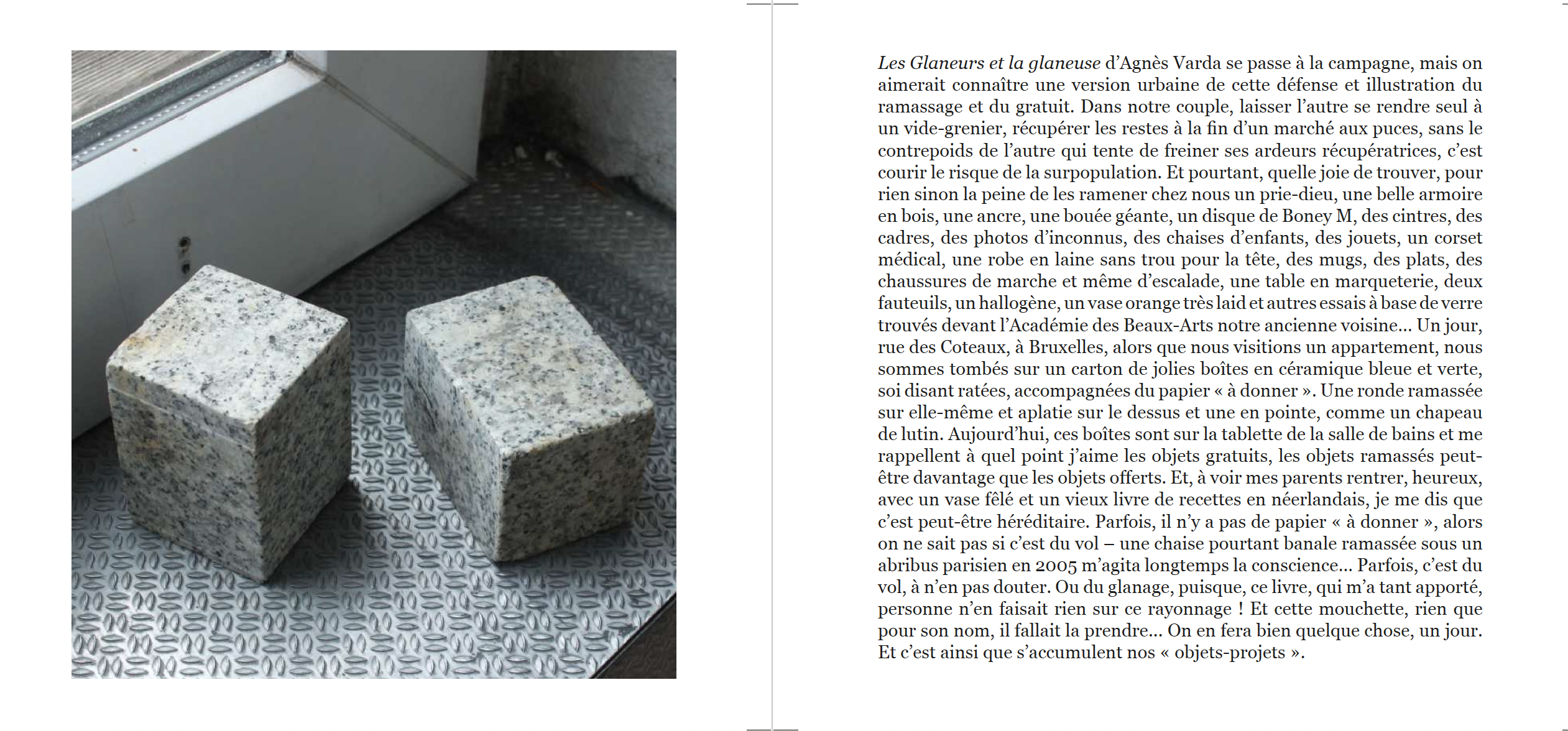 Cette exposition était accompagnée d’un catalogue, réflexion illustrée sur les objets qui nous envahissent : Effets personnels, publié à Lille par nuit myrtide, dans la collection "L’ordre des choses", 2015, 28 pages.