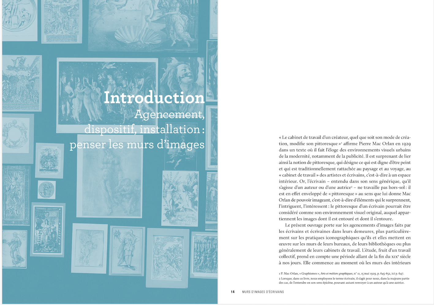 Tableaux et photographies soigneusement accrochés, cartes postales punaisées dans du liège ou plus récemment images numériques « épinglées » sur un mur virtuel… nous aimons nous entourer d’images, parce qu’elles nous évoquent des souvenirs, parce qu’elles ornent nos intérieurs, parce qu’elles nous inspirent. Ces images sont le reflet de notre histoire personnelle, sociale et culturelle. Qu’en est-il pour les écrivains et écrivaines ? Comment les murs d’images ont-ils influencé et influencent-ils encore aujourd’hui la création littéraire ? À partir de quand une pratique culturelle commune prend-elle un sens particulier pour un homme ou une femme de lettres ?